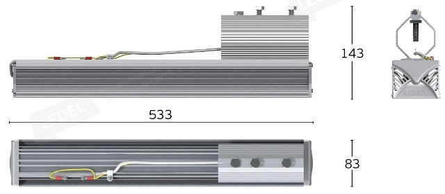 Габаритные размеры светильника, мм 533x83-164x148