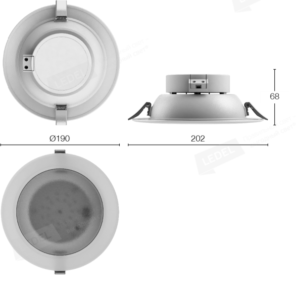Встроенный источник питания (драйвер) обеспечивает низкий коэффициент пульсаций светового потока и стабильную работу светодиодов при изменении напряжения сети (180 - 265 В).