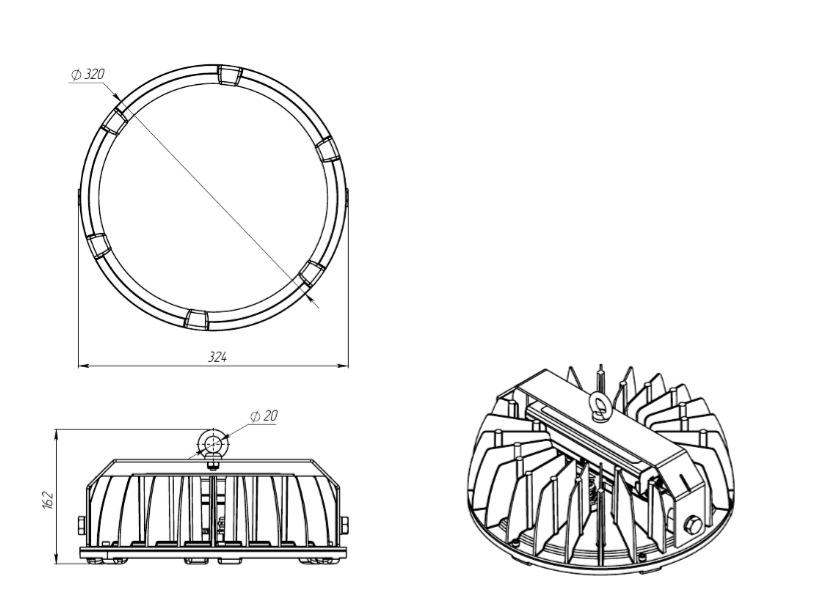 | Габаритные размеры светильника, мм | Ø320x162 |