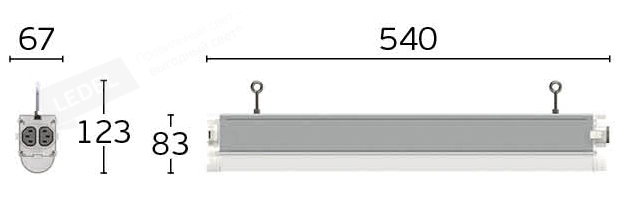 | Габаритные размеры светильника, мм | 123х540-3040х66 |